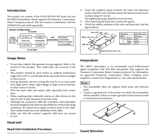 01-RP/PL101-RHP高精度磁栅尺对应松下Panasonic A4L、A4NL、A4ALseries A5系列|MINAS A6系列驱动器,专用串行协议,可以直接通讯。